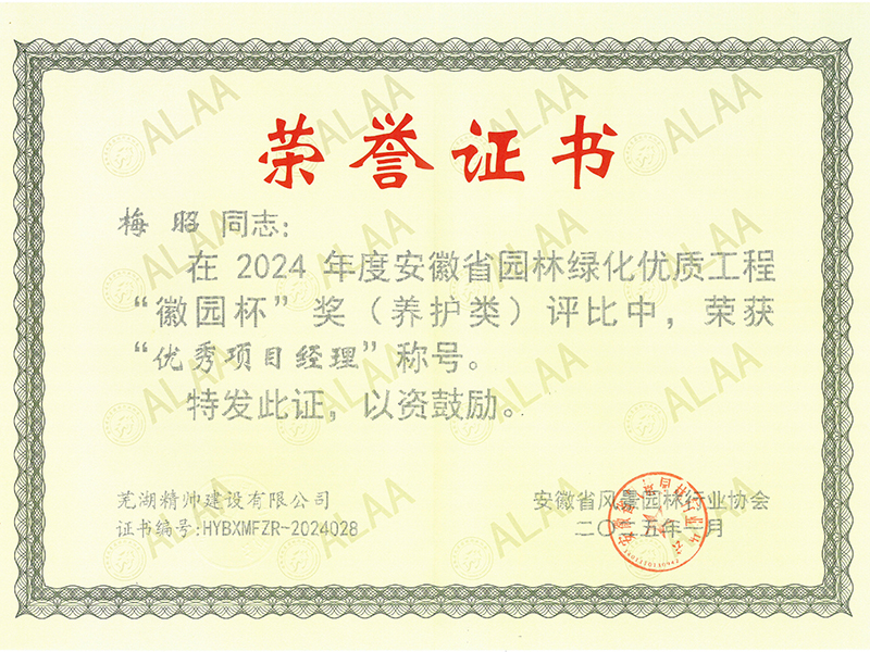 梅昭2024年度安徽省园林绿化优质工程“徽园杯”养护类优秀项目经理
