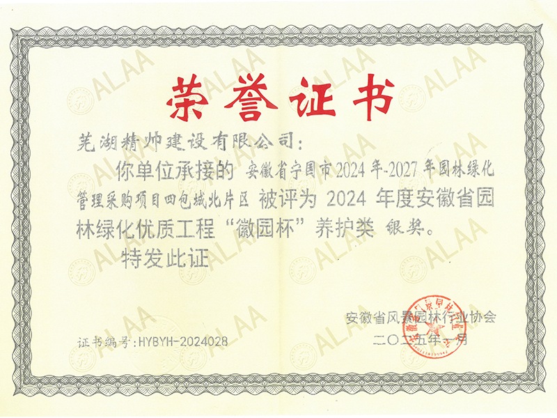 2024年度安徽省园林绿化优质工程“徽园杯”养护类银奖