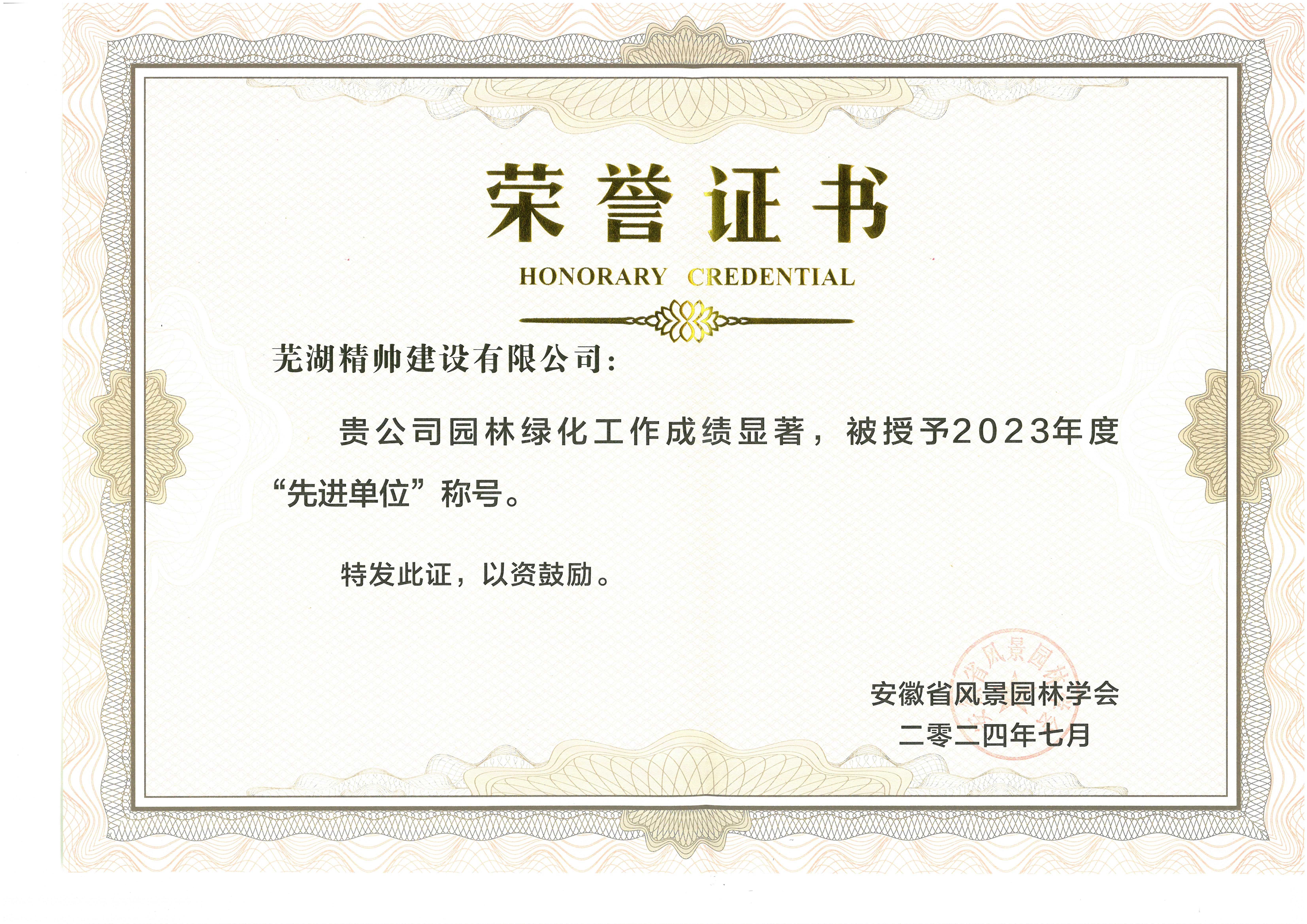 芜湖精帅建设有限公司被授予2023年度“先进单位”称号