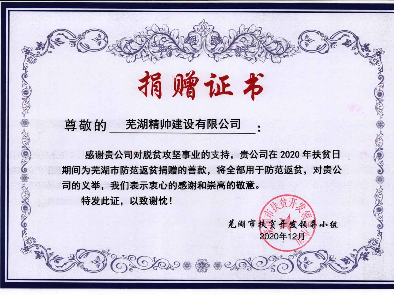 扶贫捐赠证书